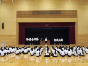 最後に、「生徒会賛歌」の歌唱練習を行って終わりました。