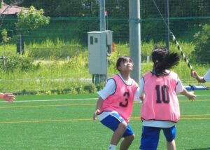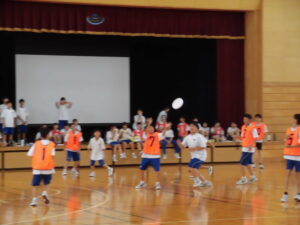 まず、予め分けられた1、2、3年生混合のグループで、ミニゲームをしました。