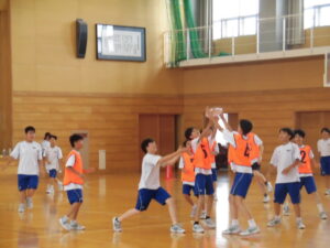 その後、生徒会が考えた「新中王 〇×ゲーム」をグループ対抗で行いました。