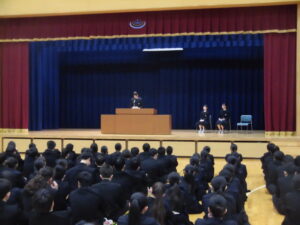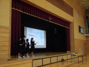 終業式では、最初に各学年代表による生徒発表を行いました。