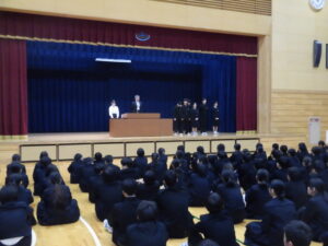 授賞集会では、2学期後半に活躍した生徒の授賞を行いました。