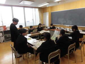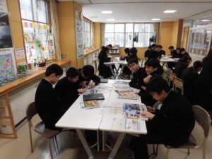 2年生は、修学旅行の事前学習を行いました。関西・広島方面の各班の訪問場所について調べています。