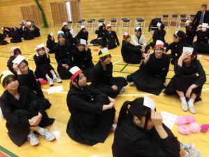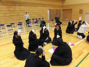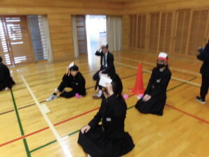 ストーブを付けても少し寒い体育館ですが、体を動かして温かくなりながら生徒間の交流をすることができました。
