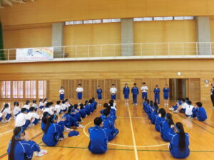 運動会実行委員の紹介、運動会テーマの発表、団決定抽選を行いました。